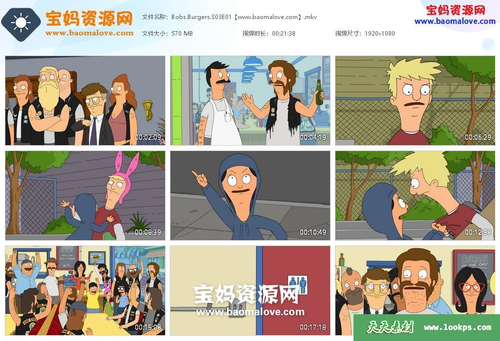 天天资源网收录的动画片《Bob’s Burgers》 开心汉堡店英文版 第三季,全部23集,英语发音,内置英文字幕(可以下载后使用播放器选择设置字幕或者关闭字幕);每集大小约440M,资源总大小10.8G,单集播放时长约22分钟,1080P高清MKV格式,可以在电视机或电脑、平板、IPAD、早教机、手机等各种设备播放,提供百度云网盘下载。