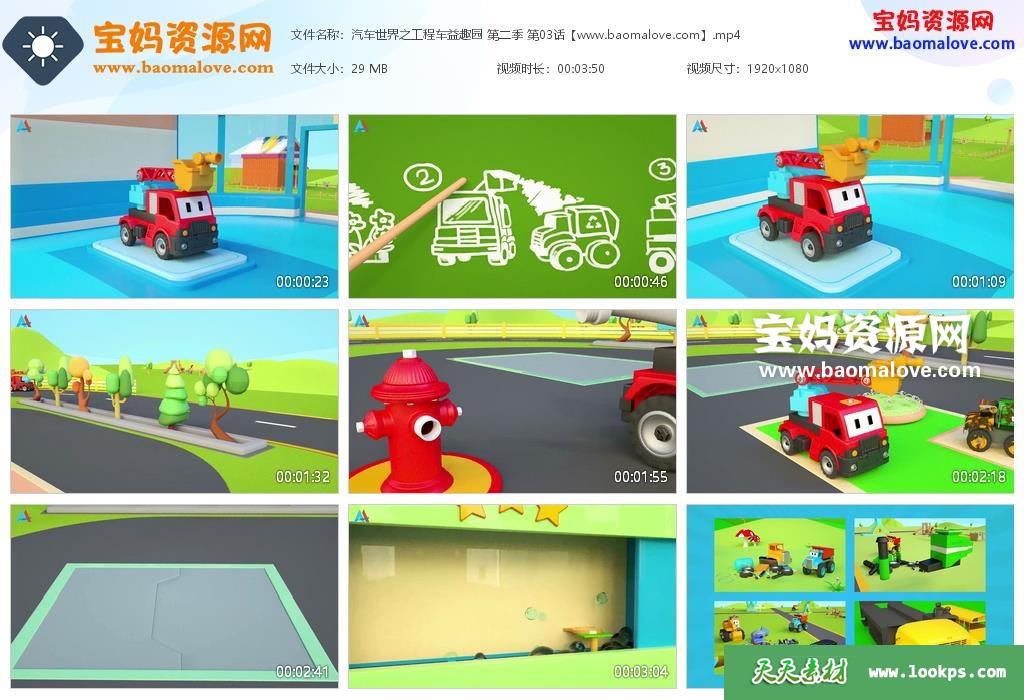 天天资源网收录的动画片《汽车世界之工程车益趣园》第二季,全部50集,国语发音,无字幕;每集大小约55M,总大小1.72G,单集播放时长约3分钟,1080P高清MP4格式,可以在电视机或电脑、平板、IPAD、早教机、手机等各种设备播放,提供百度云网盘下载。