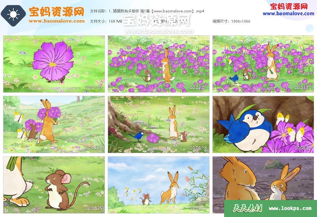 天天资源网收录的动画片《猜猜我有多爱你》Guess How Much I Love You中文版 第1~3季,每季26集,全部78集,国语发音,中文字幕;每集大小约160M,总大小11.5G,单集播放时长约11分钟,1080P高清MP4格式,可以在电视机或电脑、平板、IPAD、早教机、手机等各种设备播放,提供百度云网盘下载。