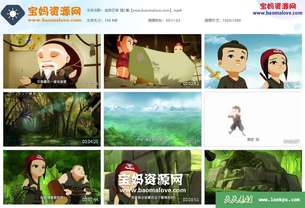 天天资源网收录的动画片《迷你忍者》Mini Ningjas中文版,全部52集,国语发音,中文字幕;每集大小约160M,总大小6.11G,单集播放时长约11分钟,1080P高清MP4格式,可以在电视机或电脑、平板、IPAD、早教机、手机等各种设备播放,提供百度云网盘下载。