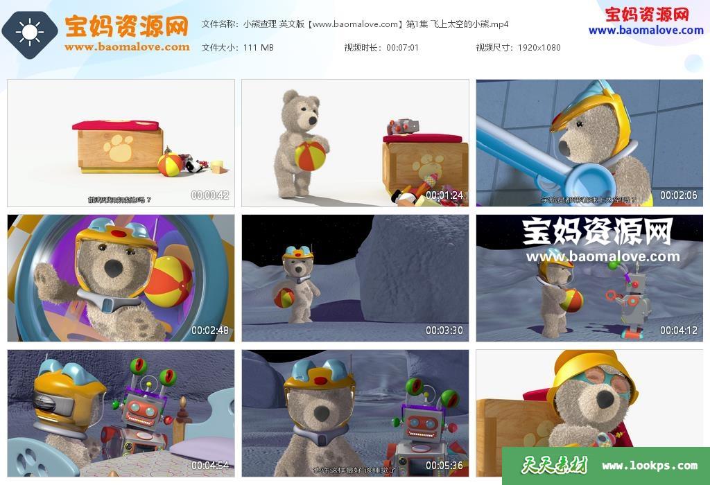 天天资源网收录的动画片《Little Charley Bear》小熊查理英文版 第一季,全部52集,英语发音,内置中文字幕;每集大小约110M,总大小5.52G,单集播放时长约7分钟,1080P高清MP4格式,可以在电视机或电脑、平板、IPAD、早教机、手机等各种设备播放,提供百度云网盘下载。