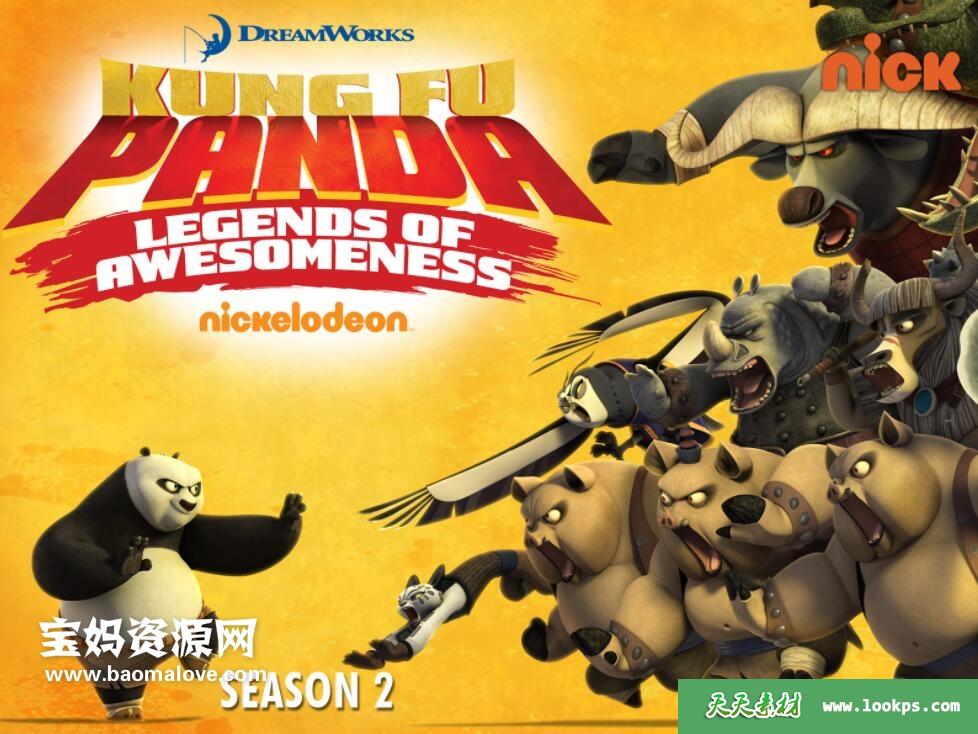 天天资源网收录的动画片《Kung Fu Panda: Legends of Awesomeness》功夫熊猫:盖世传奇英文版 第二季,全部26集,英语发音,内置英文字幕(可以下载后使用播放器选择设置字幕或者关闭字幕);每集大小约870M,资源总大小23.6G,单集播放时长约24分钟,1080P高清MKV格式,可以在电视机或电脑、平板、IPAD、早教机、手机等各种设备播放,提供百度云网盘下载。