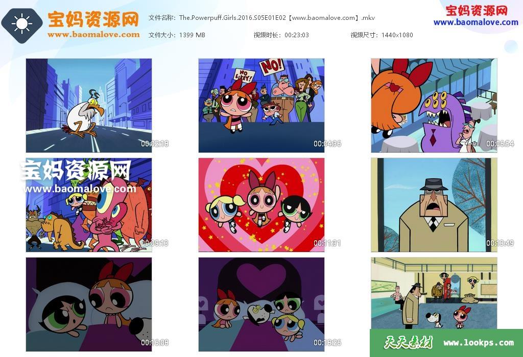 天天资源网收录的动画片《The Powerpuff Girls》飞天小女警英文版 第五季,全部21集,英语发音,内置英文字幕(可以下载后使用播放器选择设置字幕或者关闭字幕);每集大小约660M,资源总大小14.6G,单集播放时长约11分钟,1080P高清MKV格式,可以在电视机或电脑、平板、IPAD、早教机、手机等各种设备播放,提供百度云网盘下载。
