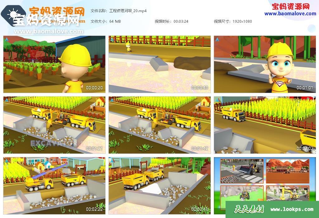 天天资源网收录的动画片《汽车世界之工程车益趣园》第三季,全部50集,国语发音,无字幕;每集大小约65M,总大小3.34G,单集播放时长约3~5分钟,1080P高清MP4格式,可以在电视机或电脑、平板、IPAD、早教机、手机等各种设备播放,提供百度云网盘下载。