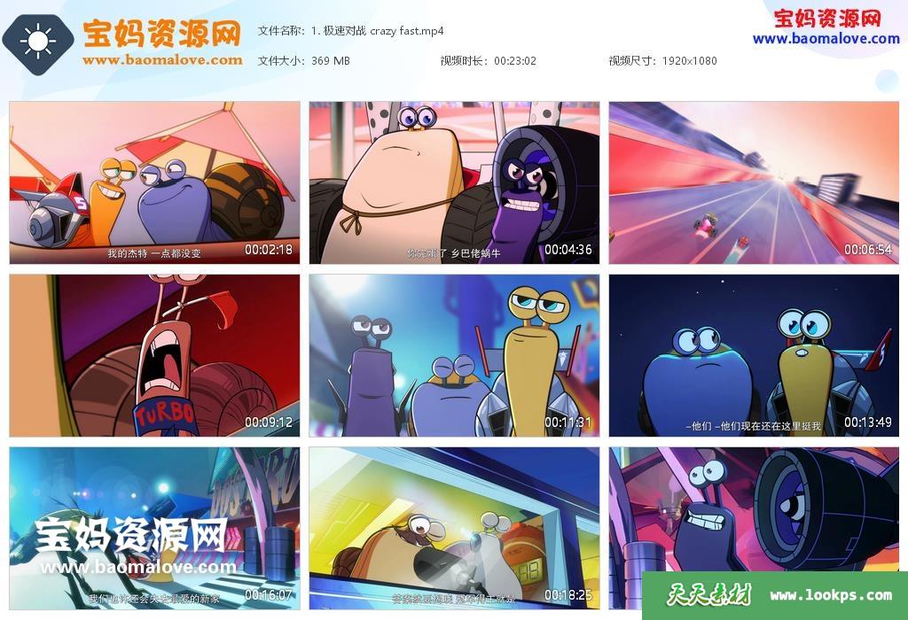 天天资源网收录的动画片《极速蜗牛 狂奔》Turbo FAST中文版 第一季,全部26集,国语发音,中文字幕;每集大小约310M,总大小7.57G,单集播放时长约23分钟,1080P高清MP4格式,可以在电视机或电脑、平板、IPAD、早教机、手机等各种设备播放,提供百度云网盘下载。