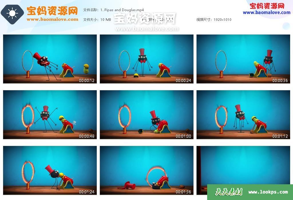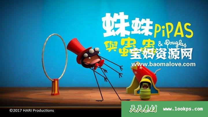 天天资源网收录的动画片《搞笑小蜘蛛》Pipas and Douglas中文版 第一季,全部52集,默片动画,无对白,类似猫和老鼠;每集大小约10M,总大小486M,单集播放时长约2分钟,1080P高清MP4格式,可以在电视机或电脑、平板、IPAD、早教机、手机等各种设备播放,提供百度云网盘下载。