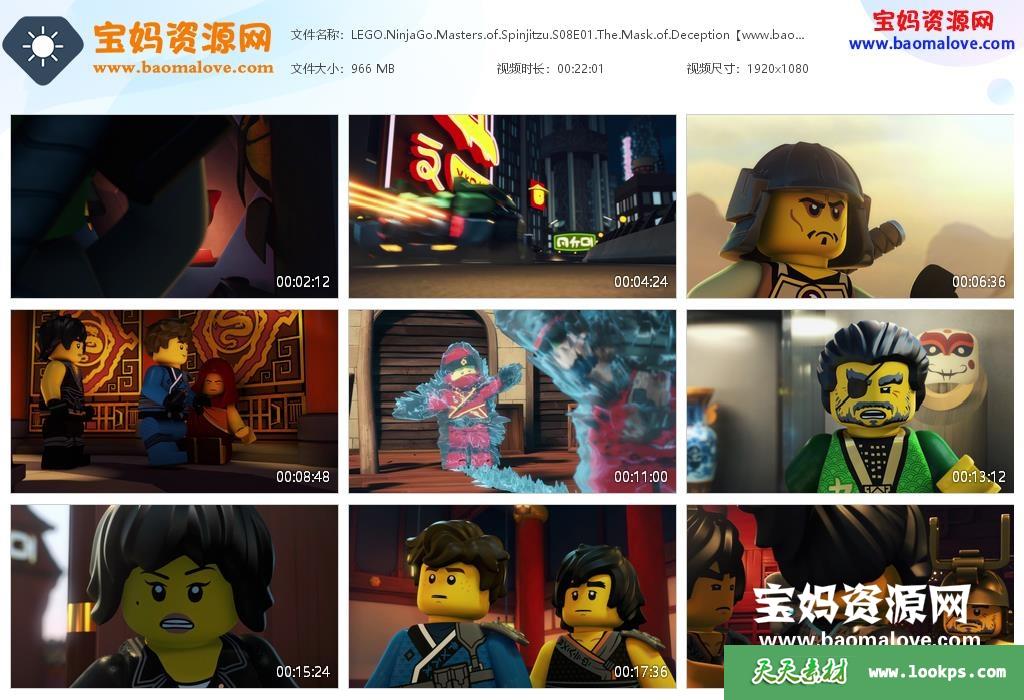 天天资源网收录的动画片《LEGO Ninjago: Masters of Spinjitzu》乐高幻影忍者:旋风术大师英文版 第八季,全部10集,英语发音,内置英文字幕(可以下载后使用播放器选择设置字幕或者关闭字幕);每集大小约900M,资源总大小9.96G,单集播放时长约22分钟,1080P高清MKV格式,可以在电视机或电脑、平板、IPAD、早教机、手机等各种设备播放,提供百度云网盘下载。