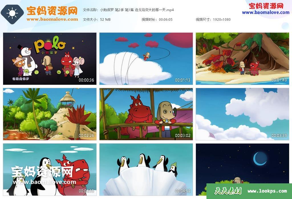 天天资源网收录的动画片《小狗保罗》Polo 第二季,全部52集,无对白,默片动画;每集大小约55M,总大小3G,单集播放时长约6分钟,1080P高清MP4格式,可以在电视机或电脑、平板、IPAD、早教机、手机等各种设备播放,提供百度云网盘下载。