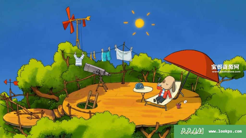 小狗保罗生活在海中央的树屋里,但他的好朋友有:生活在一艘帆船上的小猫莉莉,居住在火山上的小龙,住在白云王国里的小老鼠公主,还有生活在雪地里的雪人奥斯卡,天空中的月光小精灵。