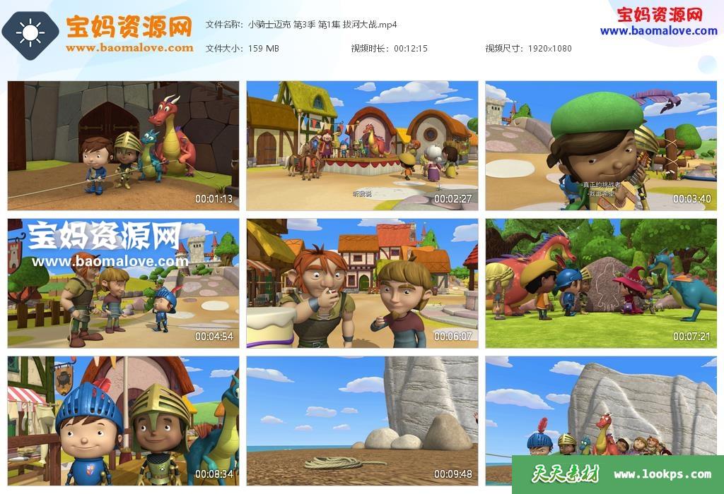 天天资源网收录的动画片《迈克小骑士》Mike the Knight中文版 第三季 ,全部26集,国语发音,中文字幕;每集大小约155M,总大小4.27G,单集播放时长约12分钟,1080P高清MP4格式,可以在电视机或电脑、平板、IPAD、早教机、手机等各种设备播放,提供百度云网盘下载。