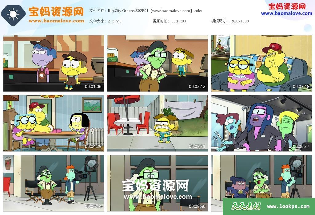 天天资源网收录的动画片《Big City Greens》格林一家进城趣英文版 第二季,全部58集,英语发音,内置英文字幕(可以下载后使用播放器选择设置字幕或者关闭字幕);每集大小约200M,资源总大小11.7G,单集播放时长约11分钟,1080P高清MKV格式,可以在电视机或电脑、平板、IPAD、早教机、手机等各种设备播放,提供百度云网盘下载。