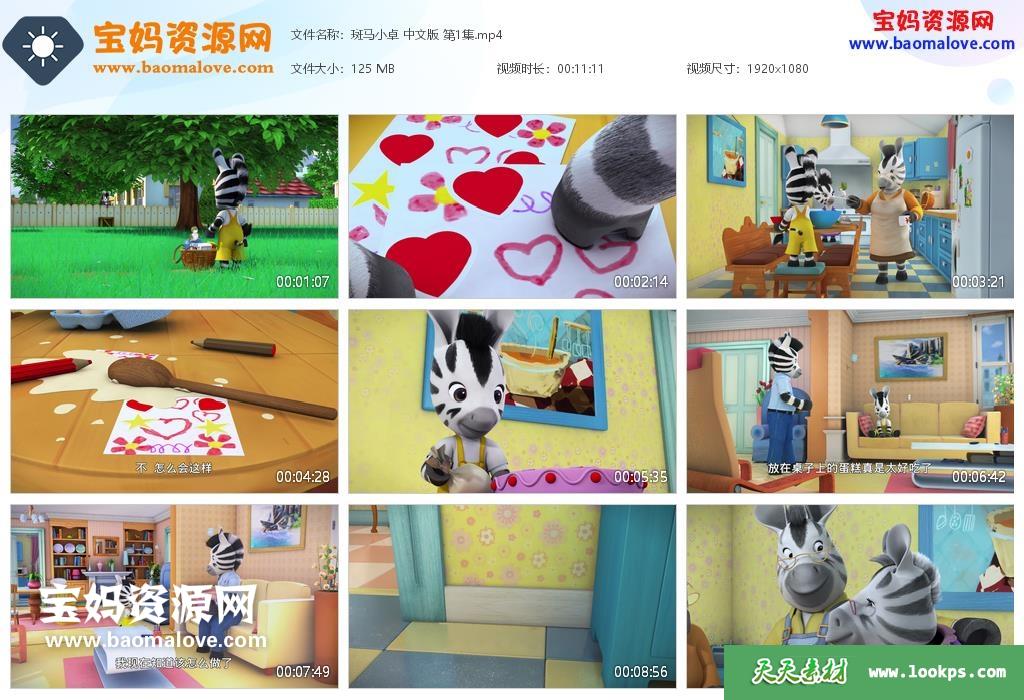 天天资源网收录的动画片《斑马小卓》Zou中文版 第一二季,全部104集,国语发音,中文字幕;每集大小约135M,总大小16.1G,单集播放时长约11分钟,1080P高清MP4格式,可以在电视机或电脑、平板、IPAD、早教机、手机等各种设备播放,提供百度云网盘下载。