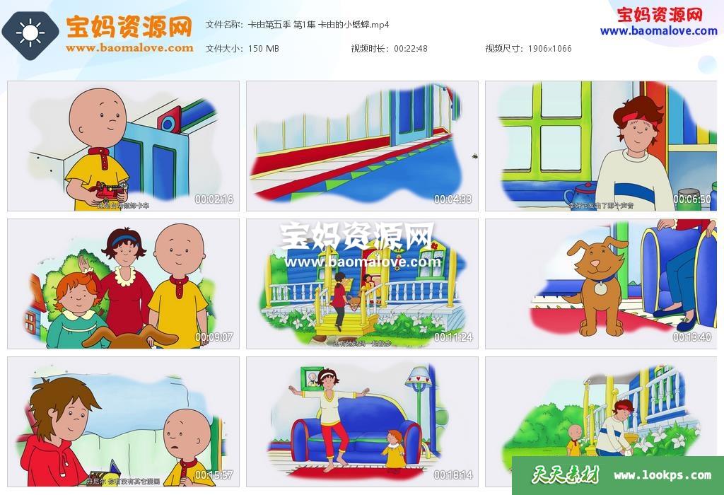 天天资源网收录的动画片《卡由》Caillou中文版 第1-5季,全部144集,国语发音,中文字幕;资源总大小8.34G,第一二三四季,分辨率为530P,第五季分辨率为1080P。高清MP4格式,可以在电视机或电脑、平板、IPAD、早教机、手机等各种设备播放,提供百度云网盘下载。