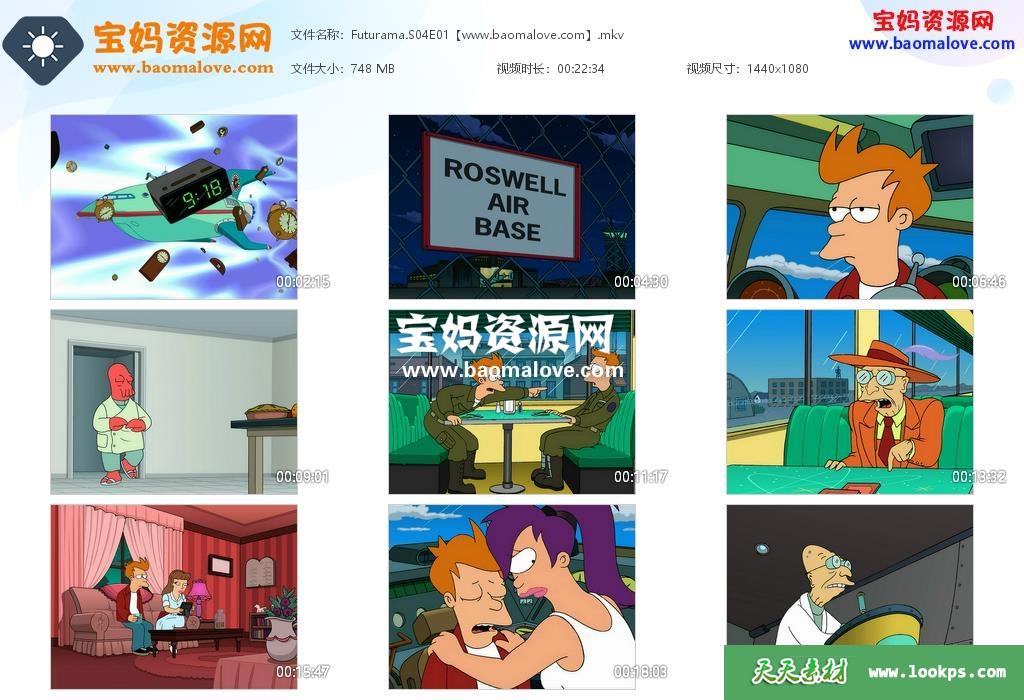 天天资源网收录的动画片《Futurama》飞出个未来英文版 第四季,全部12集,英语发音,内置英文字幕(可下载后使用播放器选择设置字幕或者关闭字幕);每集大小约750M,资源总大小9.15G,单集播放时长约22分钟,1080P高清MKV格式,可以在电视机或电脑、平板、IPAD、早教机、手机等各种设备播放,提供百度云网盘下载。