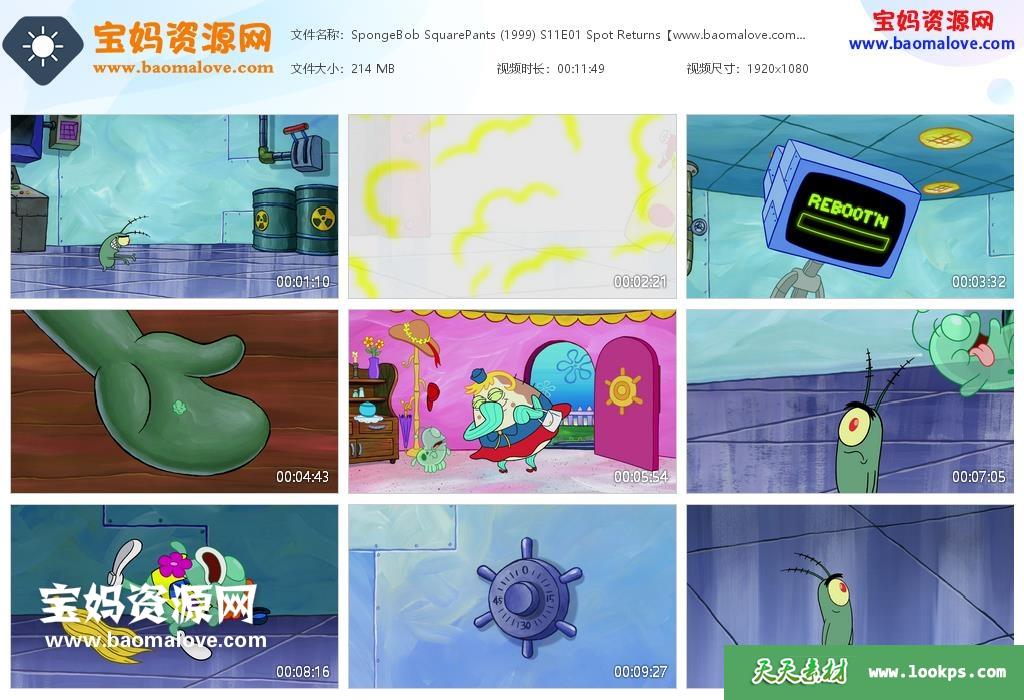 天天资源网收录的动画片《SpongeBob SquarePants》海绵宝宝英文版 第十一季,全部55集,英语发音,内置英文字幕(可以下载后使用播放器选择设置字幕或者关闭字幕);每集大小约205M,资源总大小13.6G,单集播放时长约12分钟,1080P高清MKV格式,可以在电视机或电脑、平板、IPAD、早教机、手机等各种设备播放,提供百度云网盘下载。