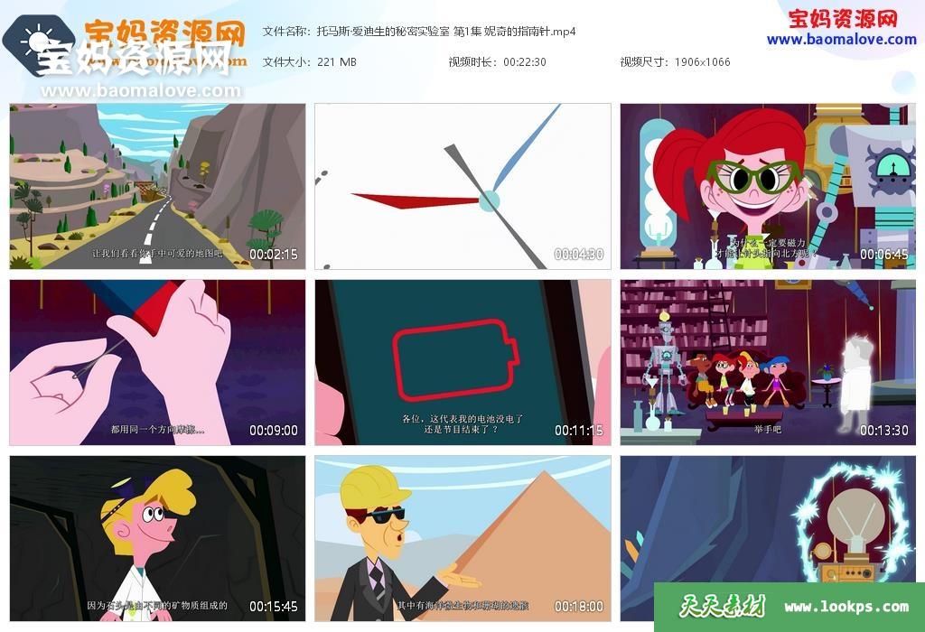 天天资源网收录的动画片《Thomas Edison’s Secret Lab》托马斯·爱迪生的秘密实验室英文版,全部26集,英语发音,内置中文字幕;每集大小约220M,总大小5.85G,单集播放时长约22分钟,1080P高清MP4格式,可以在电视机或电脑、平板、IPAD、早教机、手机等各种设备播放,提供百度云网盘下载。
