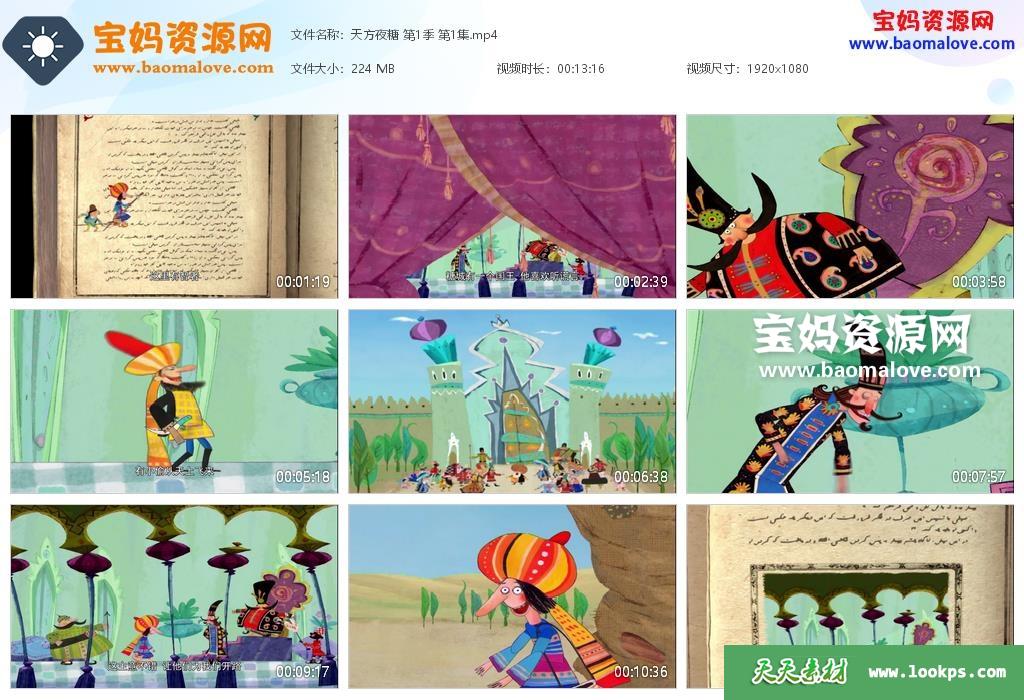 天天资源网收录的动画片《天方夜糖》第一季,全部90集,国语发音,中文字幕;每集大小约220M,总大小20.6G,单集播放时长约13分钟,1080P高清MP4格式,可以在电视机或电脑、平板、IPAD、早教机、手机等各种设备播放,提供百度云网盘下载。