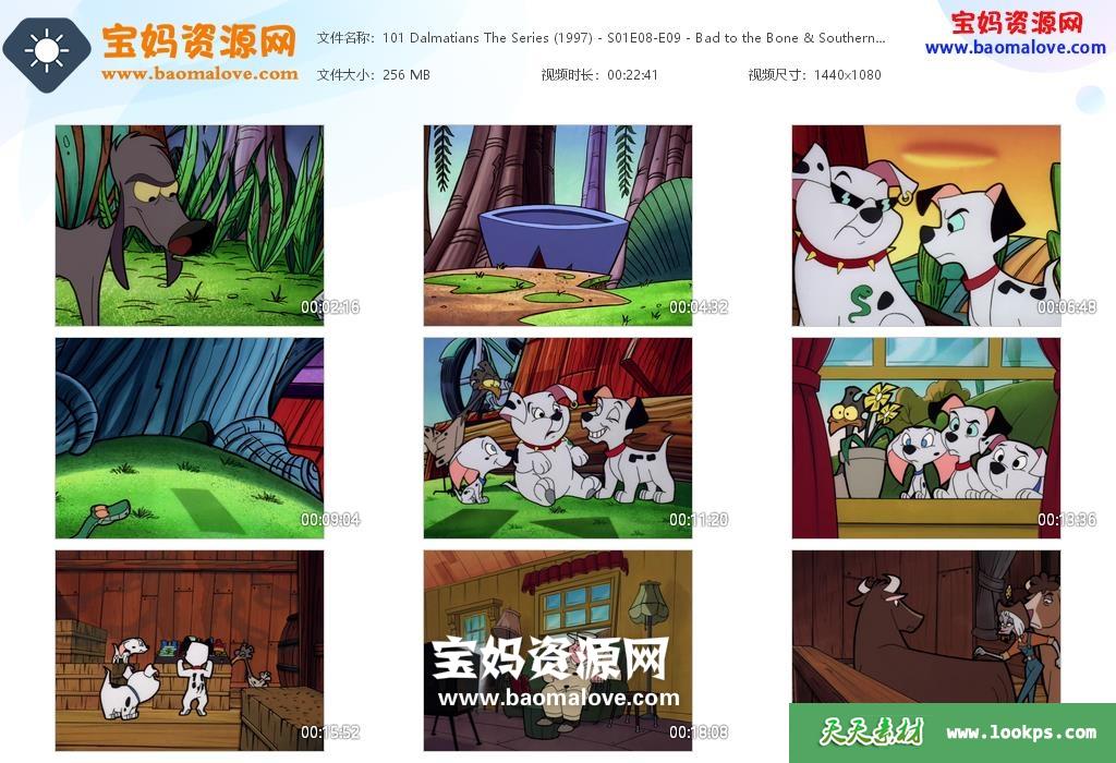 天天资源网收录的动画片《101 Dalmatians: The Series》101斑点狗英文版 第一季,全部21集,英语发音,内置英文字幕(可下载后使用播放器选择设置字幕或者关闭字幕);每集大小约125M,资源总大小3G,单集播放时长约11分钟,1080P高清MKV格式,可以在电视机或电脑、平板、IPAD、早教机、手机等各种设备播放,提供百度云网盘下载。