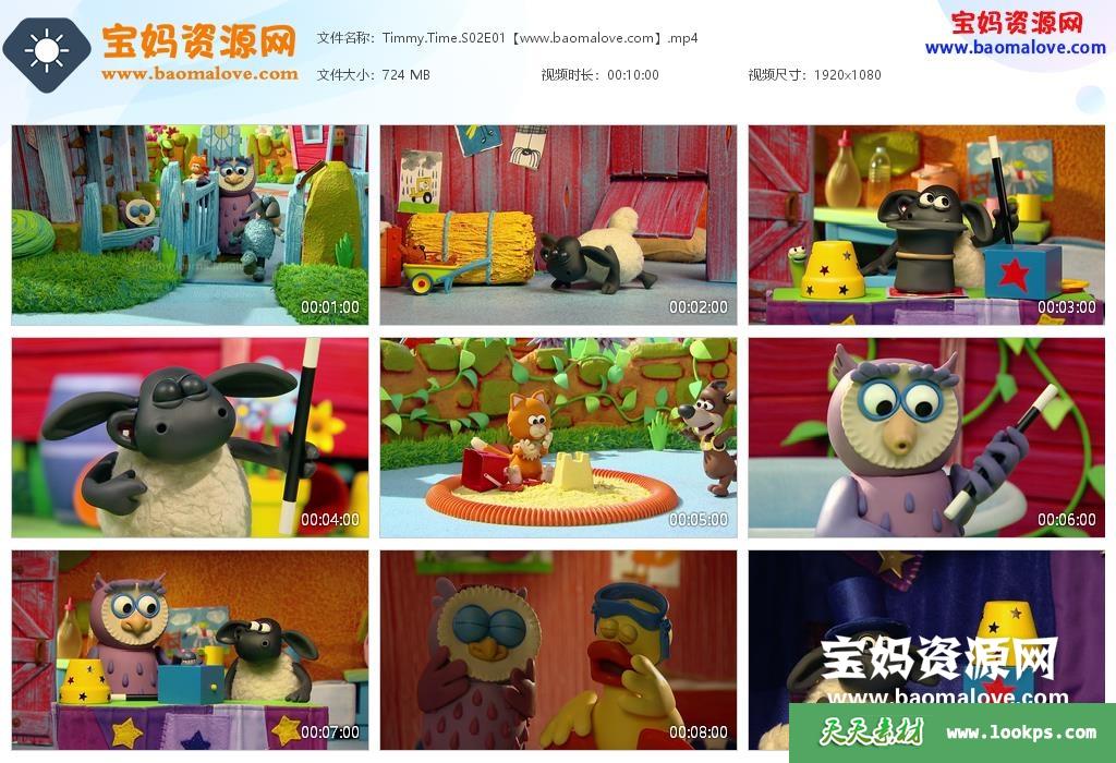 天天资源网收录的动画片《Timmy Time》小小羊蒂米英文版 第二季,全部26集,英语发音,无对白无字幕;每集大小约722M,资源总大小18.3G,单集播放时长约10分钟,1080P高清MP4格式,可以在电视机或电脑、平板、IPAD、早教机、手机等各种设备播放,提供百度云网盘下载。
