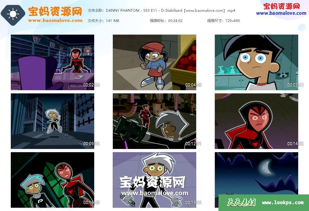天天资源网收录的动画片《Danny Phantom》幻影丹尼英文版 第一二三季,全部53集,英语发音,无字幕(第二季个别集数有字幕);每集大小约130M,资源总大小8.12G,单集播放时长约23分钟,480P标清MP4格式,可以在电视机或电脑、平板、IPAD、早教机、手机等各种设备播放,提供百度云网盘下载。