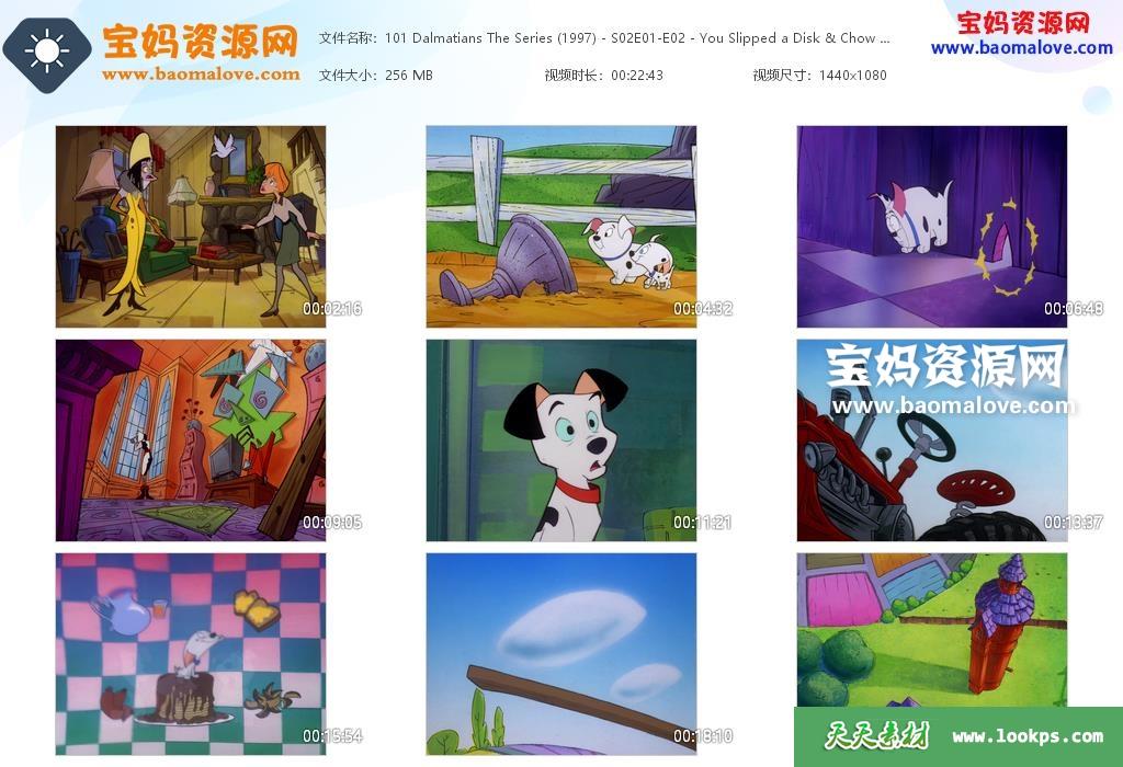 天天资源网收录的动画片《101 Dalmatians: The Series》101斑点狗英文版 第二季,全部84集,英语发音,内置英文字幕(可下载后使用播放器选择设置字幕或者关闭字幕);每集大小约128M,资源总大小13G,单集播放时长约11分钟,1080P高清MKV格式,可以在电视机或电脑、平板、IPAD、早教机、手机等各种设备播放,提供百度云网盘下载。