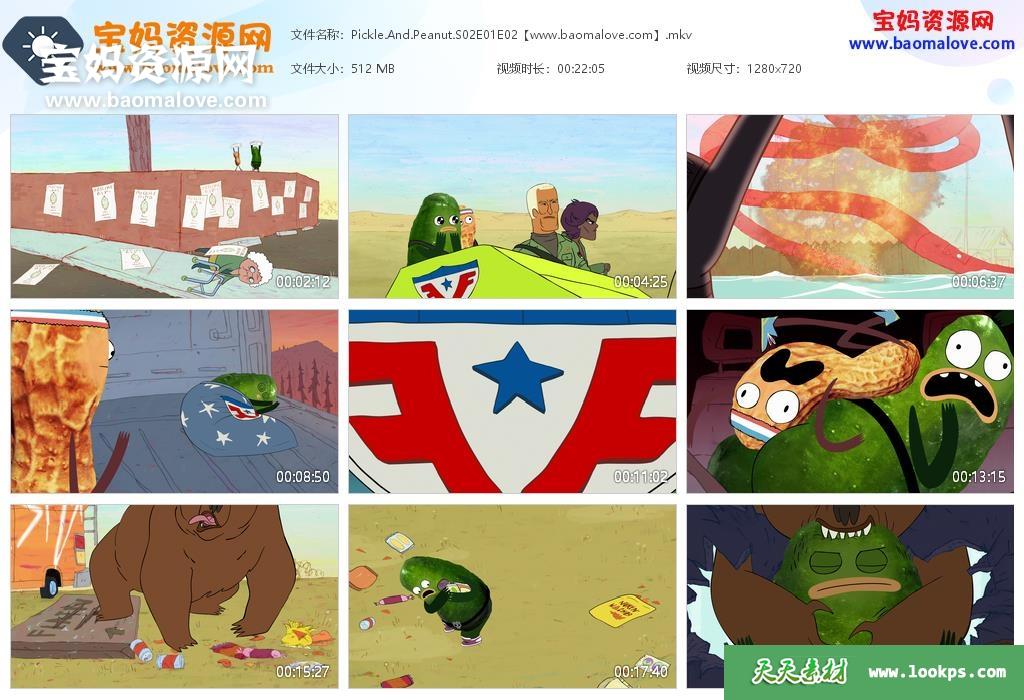 天天资源网收录的动画片《Pickle and Peanut》腌黄瓜和花生英文版 第二季,全部42集,英语发音,内置英文字幕(可以下载后使用播放器选择设置字幕或者关闭字幕);每集大小约230M,资源总大小10.1G,单集播放时长约11分钟,720P高清MKV格式,可以在电视机或电脑、平板、IPAD、早教机、手机等各种设备播放,提供百度云网盘下载。