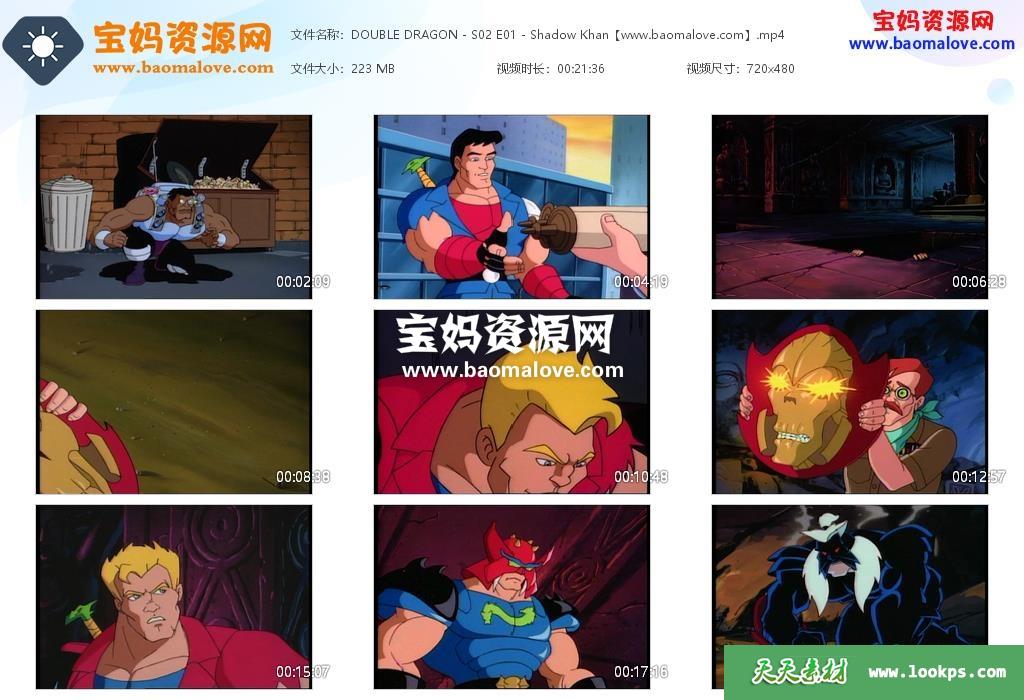 天天资源网收录的动画片《Double Dragon》双截龙英文版 第一二季,全部24集,英语发音,外挂英文字幕(可下载后使用播放器选择设置字幕或者关闭字幕);每集大小约230M,资源总大小6.28G,单集播放时长约22分钟,480P标清MP4格式,可以在电视机或电脑、平板、IPAD、早教机、手机等各种设备播放,提供百度云网盘下载。