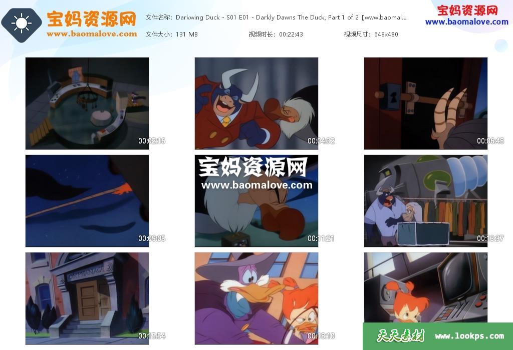 天天资源网收录的动画片《Darkwing Duck》狡猾飞天德英文版 第一季,全部78集,英语发音,外挂英文字幕(可下载后使用播放器选择设置字幕或者关闭字幕);每集大小约130M,资源总大小11.7G,单集播放时长约23分钟,480P标清MP4格式,可以在电视机或电脑、平板、IPAD、早教机、手机等各种设备播放,提供百度云网盘下载。