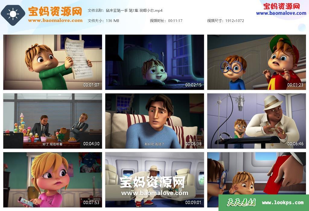 天天资源网收录的动画片《鼠来宝》ALVINNN and The Chipmunks中文版 第一季,全部52集,国语发音,中文字幕;每集大小约160M,资源总大小8.44G,单集播放时长约11分钟,1080P高清MP4格式,可以在电视机或电脑、平板、IPAD、早教机、手机等各种设备播放,提供百度云网盘下载。