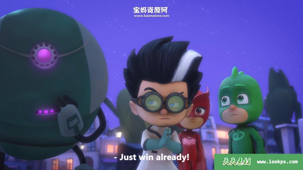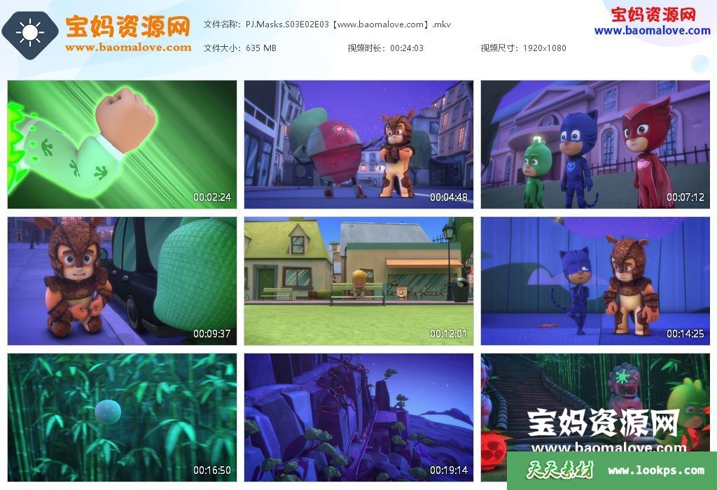 天天资源网收录的动画片《PJ Masks》睡衣小英雄英文版 第三季 全部52集,英语发音,内置英文字幕(可以下载后使用播放器设置字幕字体大小颜色或者关闭字幕);每集大小约300M,资源总大小14.8G,单集播放时长约12分钟,1080P高清MKV格式,可以在电视机或电脑、平板、IPAD、早教机、手机等各种设备播放,提供百度网盘下载。