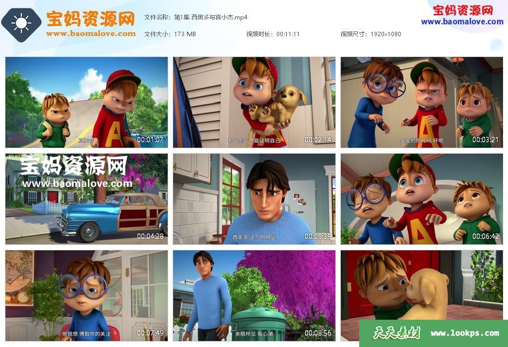 天天资源网收录的动画片《鼠来宝》ALVINNN and The Chipmunks中文版 第二季,全部50集,国语发音,中文字幕;每集大小约160M,资源总大小7.57G,单集播放时长约11分钟,1080P高清MP4格式,可以在电视机或电脑、平板、IPAD、早教机、手机等各种设备播放,提供百度云网盘下载。