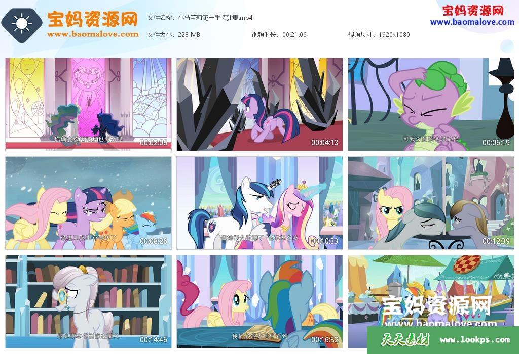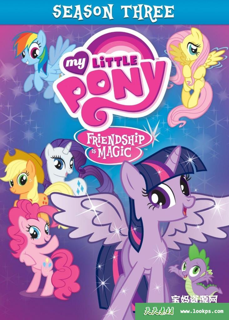 天天资源网收录的动画片《小马宝莉:友谊的魔力》My Little Pony: Friendship Is Magic中文版 第三季,全部13集,国语发音,中文字幕;每集大小约195M,资源总大小2.52G,单集播放时长约21分钟,1080P高清MP4格式,可以在电视机或电脑、平板、IPAD、早教机、手机等各种设备播放,提供百度云网盘下载。