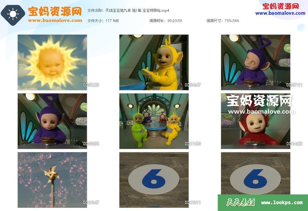 天天资源网收录的《天线宝宝》Teletubbies中文版 第九季,全部26集,国语发音,无字幕;每集大小约115M,总大小3.19G,单集播放时长约24分钟,566P标清MP4格式,可以在电视机或电脑、平板、IPAD、早教机、手机等各种设备播放,提供百度云网盘下载。