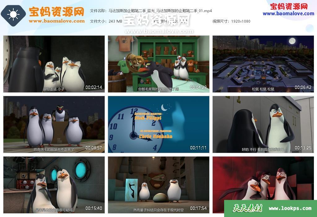 天天资源网收录的动画片《马达加斯加企鹅》The Penguins of Madagascar中文版 第二季,全部39集,国语发音,中文字幕;每集大小约260M,资源总大小10.4G,单集播放时长约22分钟,1080P高清MP4格式,可以在电视机或电脑、平板、IPAD、早教机、手机等各种设备播放,提供百度云网盘下载。