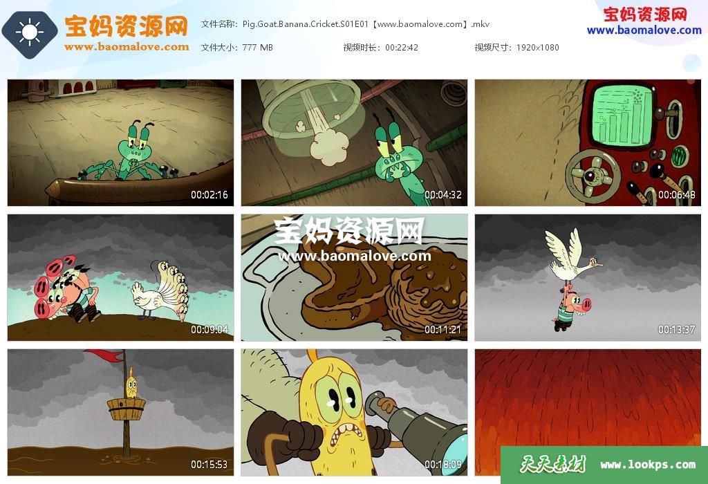 天天资源网收录的动画片《Pig Goat Banana Cricket》疯狂四剑客英文版 第一季,全部26集,英语发音,内置英文字幕(可下载后使用播放器选择设置字幕或者关闭字幕);每集大小约800M,资源总大小19.6G,单集播放时长约22分钟,1080P高清MKV格式,可以在电视机或电脑、平板、IPAD、早教机、手机等各种设备播放,提供百度云网盘下载。