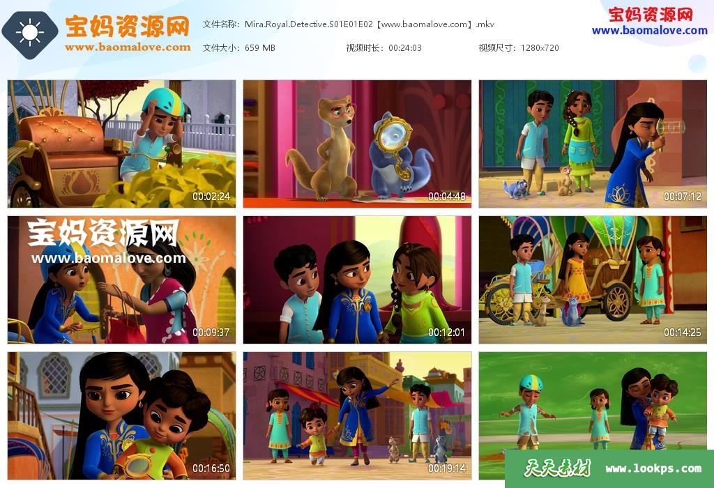天天资源网收录的动画片《Mira, Royal Detective》皇家侦探米拉英文版 第一季,全部50集,英语发音,内置英文字幕(可下载后使用播放器选择设置字幕或者关闭字幕);每集大小约320M,资源总大小16G,单集播放时长约12分钟,720P高清MKV格式,可以在电视机或电脑、平板、IPAD、早教机、手机等各种设备播放,提供百度云网盘下载。
