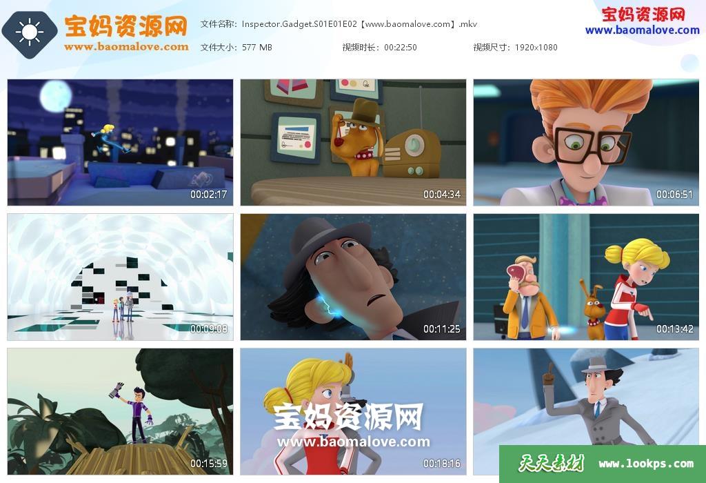 天天资源网收录的动画片《Inspector Gadget》神探加杰特英文版 第一季,全部52集,英语发音,内置英文字幕(内置多国语言字幕,西班牙文,法文,葡萄牙文,可以下载后使用播放器选择字幕或者关闭字幕);每集大小300M,总大小15.3G,单集播放时长约11分钟,1080P高清MKV格式,可以在电视机或电脑、平板、IPAD、早教机、手机等各种设备播放,提供百度云网盘下载。