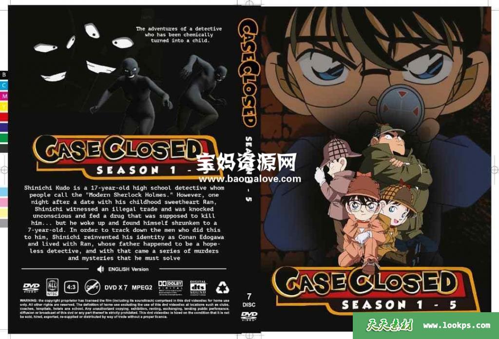 天天资源网收录的动画片《Case Closed》名侦探柯南英文版 第1~5季,全部130集,英语发音,无字幕;每集大小约174M,资源总大小23.6G,单集播放时长约24分钟,480P标清AVI格式,可以在电视机或电脑、平板、IPAD、早教机、手机等各种设备播放,提供百度云网盘下载。