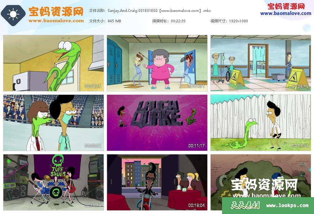 天天资源网收录的动画片《Sanjay and Craig》三三爬爬秀英文版 第一季,全部39集,英语发音,内置英文字幕(可以下载后使用播放器选择设置字幕或者关闭字幕);每集大小约430M,资源总大小16.1G,单集播放时长约11分钟,1080P高清MKV格式,可以在电视机或电脑、平板、IPAD、早教机、手机等各种设备播放,提供百度云网盘下载。