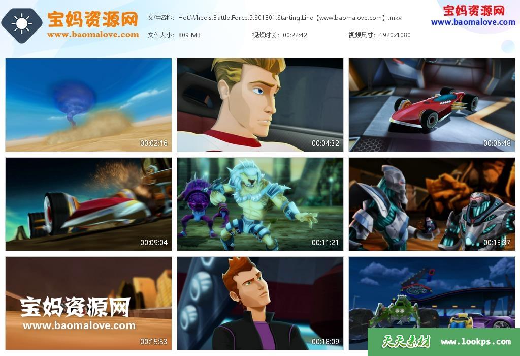 天天资源网收录的动画片《Hot Wheels: Battle Force 5》风火轮之五虎战车英文版 第一季,全部26集,英语发音,(可以下载后使用播放器设置字幕字体大小颜色或者切换关闭字幕);每集大小830M,总大小21.8G,单集播放时长约22分钟,1080P高清MKV格式,可以在电视机或电脑、平板、IPAD、早教机、手机等各种设备播放,提供百度云网盘下载。