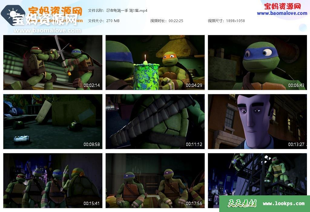 天天资源网收录的动画片《忍者龟》Teenage Mutant Ninja Turtles中文版 第一季,全部26集,国语发音,无字幕;每集大小约270M,资源总大小6.9G,单集播放时长约22分钟,1080P高清MP4格式,可以在电视机或电脑、平板、IPAD、早教机、手机等各种设备播放,提供百度云网盘下载。