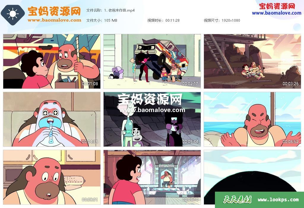 天天资源网收录的动画片《宇宙小子史蒂芬》Steven Universe中文版 第二季,全部26集,国语发音,无字幕;每集大小约95M,资源总大小2.38G,单集播放时长约11分钟,1080P高清MP4格式,可以在电视机或电脑、平板、IPAD、早教机、手机等各种设备播放,提供百度云网盘下载。