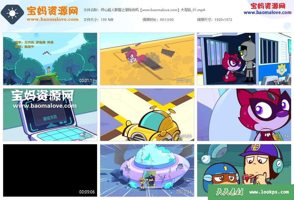 天天资源网收录的动画片《开心超人联盟之星际危机》 全部52集,国语发音,中文字幕;每集大小约160M,总大小9.87G,单集播放时长约13分钟,1080P高清MP4格式,可以在电视机或电脑、平板、IPAD、早教机、手机等各种设备播放,提供百度云网盘下载。