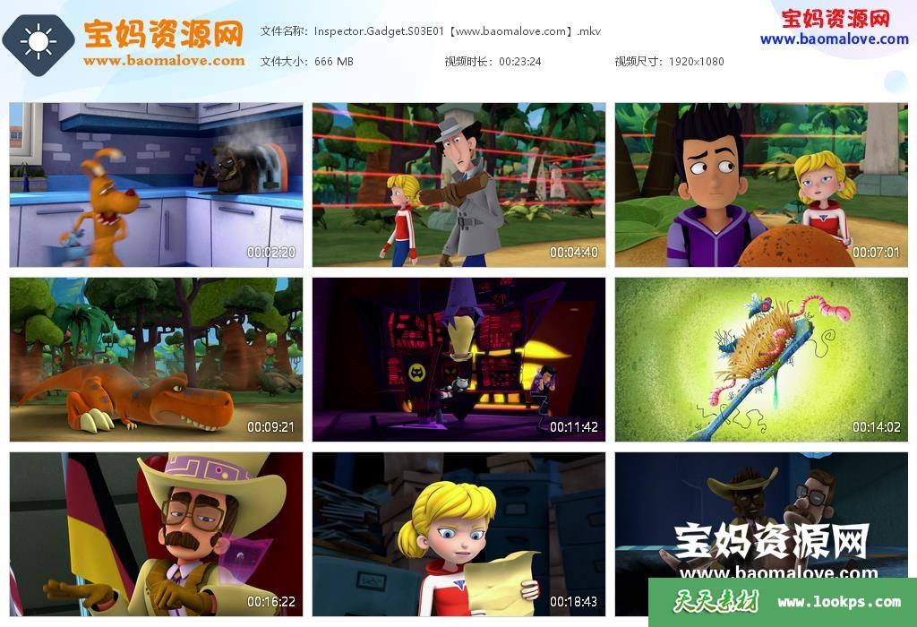 天天资源网收录的动画片《Inspector Gadget》神探加杰特英文版 第三季,全部26集,英语发音,内置英文字幕(内置多国语言字幕,如简体中文,繁体中文,阿拉伯文,丹麦文,西班牙文,芬兰文,法文,意大利文,挪威文,荷兰文,波兰文,葡萄牙文,瑞典文等,可以下载后使用播放器设置字幕字体大小颜色或者关闭字幕);每集大小300M,总大小8.09G,单集播放时长约11分钟,1080P高清MKV格式,可以在电视机或电脑、平板、IPAD、早教机、手机等各种设备播放,提供百度云网盘下载。