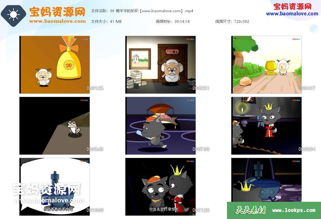 天天资源网收录的动画片《喜羊羊与灰太狼》第一部,全部530集,国语发音,中文字幕;每集大小约35M,总大小19.4G,单集播放时长约14分钟,592P标清MP4格式,可以在电视机或电脑、平板、IPAD、早教机、手机等各种设备播放,提供百度云网盘下载。