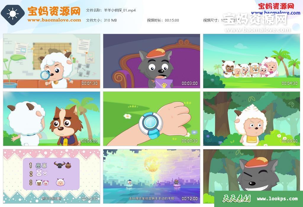 天天资源网收录的动画片《喜羊羊与灰太狼之羊羊小侦探》全部60集,国语发音,中文字幕;每集大小约120M,总大小7.84G,单集播放时长约15分钟,1080P高清MP4格式,可以在电视机或电脑、平板、IPAD、早教机、手机等各种设备播放,提供百度云网盘下载。