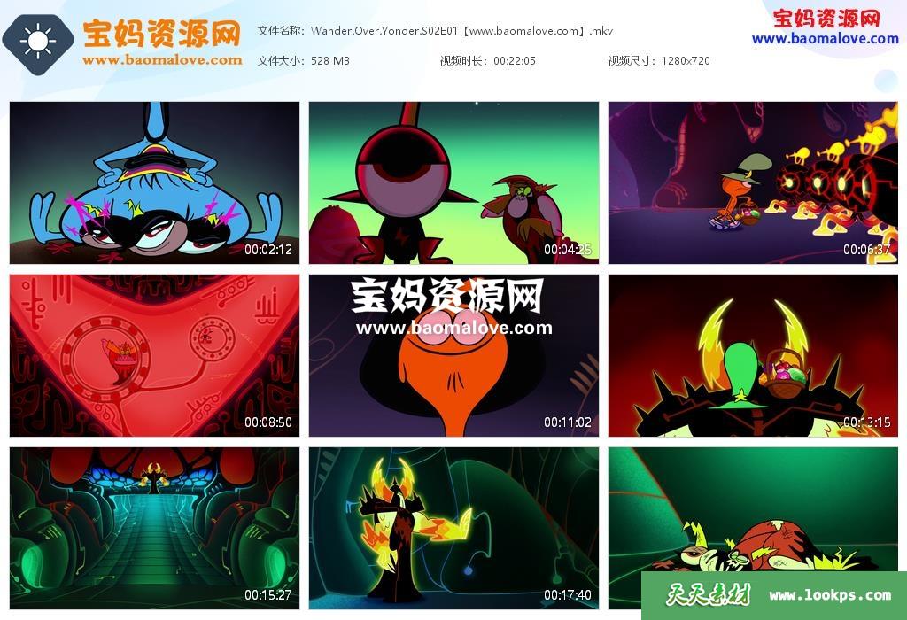 天天资源网收录的动画片《Wander Over Yonder》星际漫步英文版 第二季,全部40集,英语发音,内置英文字幕(可以下载后使用播放器选择设置字幕或者关闭字幕);每集大小约255M,资源总大小11.1G,单集播放时长约11分钟,720P高清MKV格式,可以在电视机或电脑、平板、IPAD、早教机、手机等各种设备播放,提供百度云网盘下载。