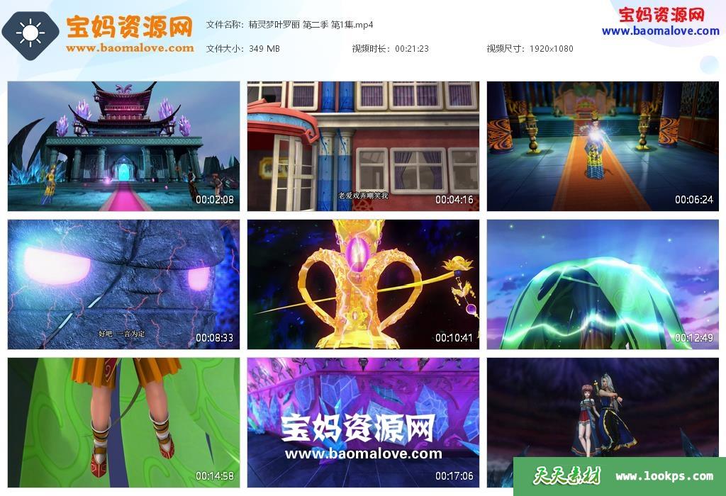 天天资源网收录的动画片《精灵梦叶罗丽》第二季,全部26集,国语发音,中文字幕;每集大小约290M,总大小7.58G,单集播放时长约22分钟,1080P高清MP4格式,可以在电视机或电脑、平板、IPAD、早教机、手机等各种设备播放,提供百度云网盘下载。