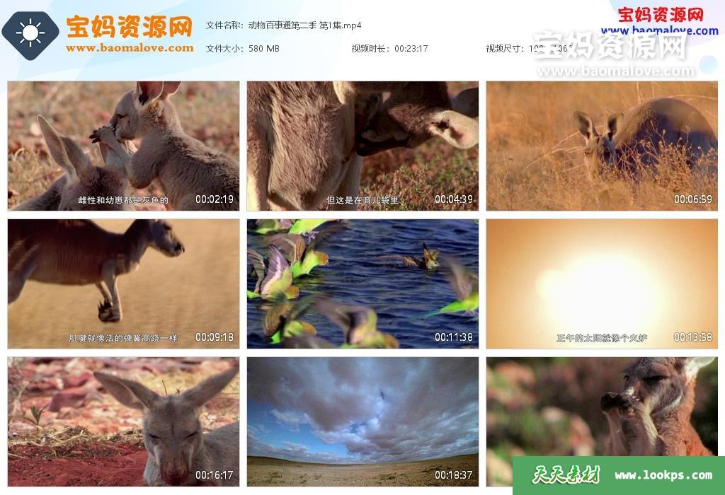 天天资源网收录的动画片《ALL ABOUT ANIMALS SERIES》动物百事通英文版 第二季,全部26集,英语发音,内置中文字幕;每集大小约600M,资源总大小14.8G,单集播放时长约24分钟,1080P高清MP4格式,可以在电视机或电脑、平板、IPAD、早教机、手机等各种设备播放,提供百度云网盘下载。