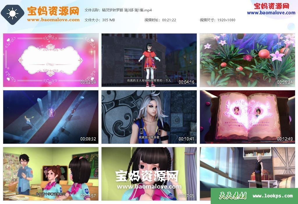 天天资源网收录的动画片《精灵梦叶罗丽》第三季,全部26集,国语发音,中文字幕;每集大小约290M,总大小7.66G,单集播放时长约22分钟,1080P高清MP4格式,可以在电视机或电脑、平板、IPAD、早教机、手机等各种设备播放,提供百度云网盘下载。